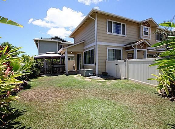 Highly desired Plan 3 in Launani Tides! Spacious and private upgraded home w/ central ac...Huge yard w/ tropical landscaping/privacy fence situated in quiet culdesac...Cozy lanai with gazebo for outdoor entertaining...Keoneula/Ewa Makai school district...only 2 yrs old and better than new!! Community pool/ gazebo/ kitchenette! Rarely available...Won't last!