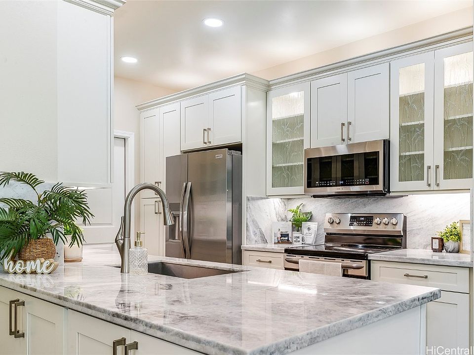 Welcome HOME to this immaculate 4 bedroom, 2.5 bathroom home in desirable Laulani Trades. A show-stopping home with custom finishes throughout including a STUNNING kitchen completely renovated in 2020 with marble countertops and backsplash that rise up to the custom cabinetry. Enjoy the community pool or relax and stay cool in the home with an upgraded central air conditioning system without worry of your electric bill with 19 solar panels. Uniquely located in the community, the pool and ample guest stalls are right across the street perfect for entertaining! Appreciate the conveniency of living in Laulani Trades, tucked away behind Laulani Village Shopping Center, you have the entire shopping center only seconds away and Oahu's third largest mall, Ka Makana Ali'i within minutes. Truly a home you can't miss out on!