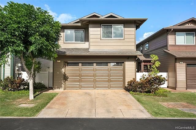 Welcome to Laulani Trades , Ewa by Gentry. Situated near the pool, this spacious residence boasts 9 -foot ceilings on the main level, plantation shutters, 3 beds, one of which is an extra- large master suite, 3 full baths and an attached 2-car garage. Home has parking for a total of 4 vehicles. On the main level you will find newly installed Lifeproof Luxury Vinyl Plank flooring ("Buckhorn Grey Oak"), brand new Samsung stainless steel refrigerator and gorgeous oversized tile floors in the kitchen and baths. The entire 2nd level features brand new carpeting with upgraded padding. This home also boasts 10 owned photovoltaic panels on net metering, recently serviced solar water heater and central air conditioning, fresh paint inside and out, as well as freshly laid sod in the back garden.