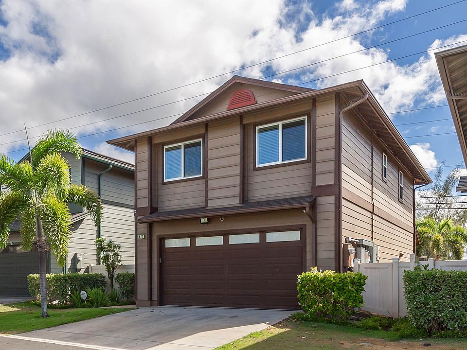 Welcome Home to Laulani-Trades! This well-maintained 3 bedroom, 2 1/2 bathroom home is available now! Equipped with 27 PV panels, 2 Tesla batteries, a solar hot water heater, and a Tesla wall charger, this home is energy efficient and you can enjoy the central AC while still maintaining lower electric bills! The open floor plan with a generous size loft on the second floor makes for a great family room or office area. The primary bedroom features an ensuite bathroom with dual vanity sinks and a large walk-in closet. Whole home water softener and water filtration system included. 2 car spacious garage and driveway for an additional 2 cars. 10 Guest parking stalls are located directly across from the driveway. Rent includes the use of the community pool, trash, water, and sewer. Conveniently located near grocery stores, shopping, and the newly built Wai Kai lagoon featuring a 100-foot wide wave machine, restaurants, and weekly events.