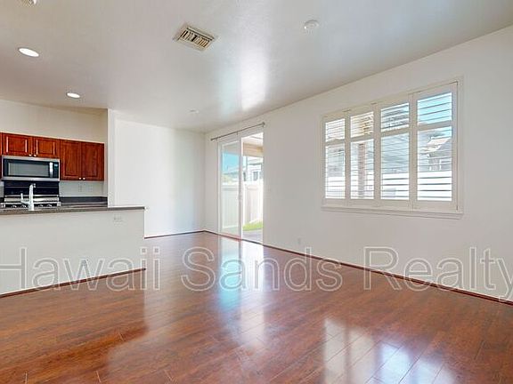 Welcome to the charming Ewa By Gentry neighborhood, where you'll discover the epitome of comfortable living in the beautiful Laulani Trades community. This meticulously maintained home offers an array of features that will cater to your every need. As you step inside, you'll immediately notice the upgraded wood flooring that graces the entire lower level, providing both elegance and durability. Soft, plush carpeting on the upper level ensures a cozy retreat for you and your family. The heart of this residence is its open-plan living and dining area, offering a spacious and inviting atmosphere for gatherings with loved ones. A covered patio seamlessly extends this space into your private yard, perfect for outdoor entertainment and relaxation. The kitchen is a chef's dream, boasting ample cabinet space for all your culinary essentials and stainless steel appliances that not only enhance the aesthetics but also make meal preparation a breeze. You'll find plenty of room for cooking and storage, making daily life more convenient. This residence comes complete with solar panels, helping you reduce your monthly electricity expenses. When you need to unwind and enjoy some leisure time, the community pool and recreation area are just moments away, offering a perfect retreat from the hustle and bustle of daily life. In addition to the two-car garage with a washer and dryer for your convenience, ample guest parking is conveniently located nearby, ensuring your guests always have a place to park. Location-wise, this home couldn't be better situated. You'll find yourself in close proximity to hospitals, parks, schools, restaurants, shopping centers, and the prestigious Ka Makana Ali'i mall. Whether it's for work, leisure, or daily errands, everything you need is within reach. Don't miss the opportunity to make this remarkable property your new home. It's a place where comfort, convenience, and community come together to create an exceptional living experience. Welcome to your Laulani Trades oasis in the desirable Ewa By Gentry neighborhood! Amenities: Community Pool, Washer/Dryer in Unit, 2 Car Garage