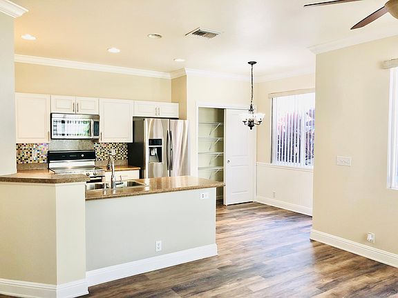 MOVE IN READY! Newly renovated interior with new refrigerator, bathrooms, flooring and much more. Newly painted inside and out with extra parking space on one side of the house. Solar hot water heater, refinished garage with second refrigerator. Walk in closets in all bedrooms. Near beach, dog parks, community center, mall, 24-hour fitness and much more. Walking distance to schools, grocery stores, Starbucks and restaurants. Water and sewer included. A Must See! Tenant is responsible for electric and cable services.