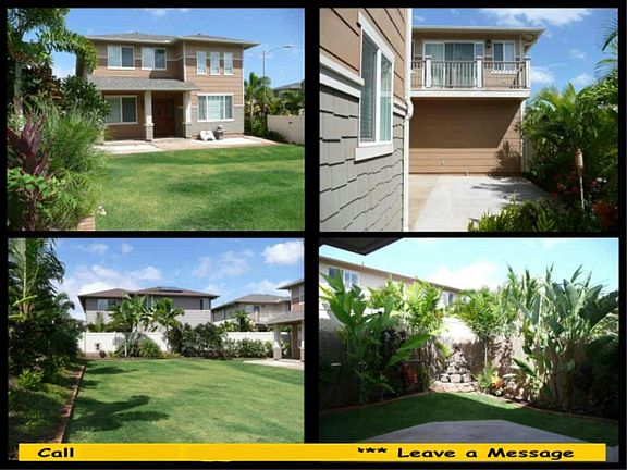 LARGE Executive/Luxury Home. Most popular unique BANYAN model. Located in a quiet and private cul-de-sac this is one of the largest lots in Woodbridge II, nearly 9,000 sq ft. This vinyl fenced yard has two fantastic lanais/patios great for entertaining and a huge lawn area for the kids to play. Professional landscaped yard with mature tropical theme. Hearty Hawaiian plants throughout. Granite kitchen counters along with upgraded stainless steel appliances adorn the kitchen. This house boasts 4 bed, 3.5 bath, plenty of privacy and space for everyone. (2 Master Suites, 2 Bedrooms, Family Rm, Dining Rm, Living Rm). The house is surround sound ready in both master suites and throughout the house. Pergo / Laminate Wood and Vinyl / Carpet. A/C Split (Zoned Upstairs / Downstairs), Auto Garage Door Opener, Blinds with window covering, Cable TV, Ceiling Fans with remote, Convection Oven, Dishwasher, Disposal, Washer / Dryer, Microwave, Range Hood, Range/oven, Smoke Detector, Solar Water Heater and Crown Moldings. Landscaped yard, Sprinkler System, Patio/deck, Wall/fence. Solar Water Heater. Three (3) patios: entrance, side, and back. Large two car garage with a long driveway that can park 4 more cars. Lots of space inside and out on a private cul-de-sac. Great for entertaining. Planned Community located just before Hawaii Prince Golf Course. NOT all the way into Ewa Beach, before Ocean Point. The property lot is the only house that sits within the cul-de-sac. The house borders more than half of the cul-de-sac. There is no reason at all for any vehicle to go into the cul-de-sac. Near schools, shopping, restaurants, hospital, beaches, golf course, parks and more. Just minutes away from Schofield Barracks and Wheeler. About 2 mile from the new shopping center that is being built. About 3 miles from University of Hawaii's new West Oahu campus. About 3 miles from White Plains Beach. NO pets, NO sub-leasing and NO smoking. Minimum 2 year lease. View more pictures at website: Rental by owner NO MIDDLE PERSON to deal with. Pet Information: Pets allowed: NO Appliances Included: Dishwasher, Dryer - Electric, Garbage Disposal, Microwave, Oven - Electric, New Refrigerator, Stove - Electric, Washer/Dryer - In Unit / New Washer Area of City: Award Winning Ewa Gentry Homes Utilities Included: Garbage, Yard Service Included. Year Built: 2005 Military welcome, Large home with large space for storage too. Parking is not a problem - long driveway. Yard Service included,