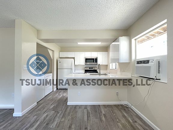 Just Renovated! 2 Bed | 1 Full Bath + 2 Half Baths Corner-End Unit in Westloch Fairway. Be the first to live in this freshly renovated, charming 2-bedroom, corner-end townhome located in the highly sought-after Westloch Fairway community. This spacious and bright unit includes 1 full bathroom and 2 convenient half baths, perfect for comfortable everyday living. The home features new laminate wood and new carpet flooring, new cabinet, new range oven, new gas stove & new microwave with hood. You'll enjoy the cool comfort of 3 new window A/C units and new ceiling fans, along with the convenience of 2 assigned uncovered parking stalls, extra storage, and a private yard ideal for relaxing or outdoor activities. Nestled in a quiet and well-established neighborhood, this unit offers access to a clubhouse, nearby parks, and is located just one stoplight from the H-1 freeway ramp, making commuting a breeze. It's also close to Queens West Hospital, shopping centers, golf courses, dining, and entertainment options. Showings by appointment only. Unit to be rented as shown. Lester S. Tsujimura (PB) RB-15835 TSUJIMURA & ASSOCIATES, LLC One year lease. No pets. No smoking. Renter pays for electricity, gas, internet/cable, yard service and renters insurance. Water/sewer included.