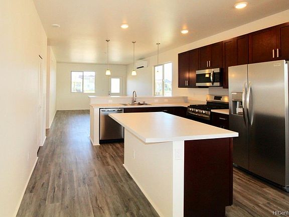 BRAND NEW Just built, be the first to live in this spacious single level home in Ho'opili. Enjoy 1512SF of interior space with 3 bedrooms, 2 full bathrooms & enclosed 2 car garage with additional driveway and street parking. Well appointed modern kitchen with all brand new stainless steel Fridgidaire Gallery appliances, an eat-in island as well as a sit down peninsula. Stay cool with split A/C units in each room and save on energy costs with your gas water heater, range and dryer. Drapes to be installed on all windows. Yard maintenance and a one year membership at the nearby Kroc Center included in rent. Home is within walking distance of the future recreation center with pool currently under construction. No smoking, pets negotiable.