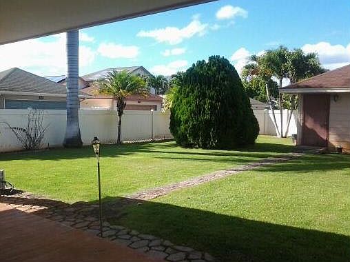 Beautiful and very spacious, 2 story, partly furnished, 4 bedroom, 3 bath single family residence located at the beautiful community of Ocean Pointe in Ewa Beach. 3 bedrooms and 2 bathrooms upstairs and 1 bedroom and 1 bathroom downstairs, formal dining room area, central air-conditioning, full size washer and dryer, dishwasher, refrigerator, range/oven, 2 car enclosed garage, private fenced huge yard with beautiful lush green lawn, and large covered outdoor patio to enjoy! Close to shopping centers with great shopping and restaurants, schools, parks, beach, golf courses, Schofield Army Base, and other military bases via the H-1, H-2 and H-3 freeways. Long term rental available now at $2850.00/month, yard service included.