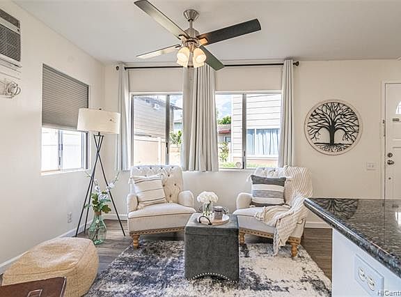 Rarely available immaculate and well kept 3 bedroom, 2 bath townhouse in highly sought Avalon, Ewa by Gentry neighborhood. This home features 1 ground floor bedroom with a full bath. Fully renovated in 2020, laminate flooring on the first floor, kitchen granite counters and a nice fenced in courtyard area. Clubhouse, Pool & Amenities as part of the Ewa by Gentry Community Association, use is subject to Association's rules. Conveniently located near the Ft Weaver Rd, with a short drive to Foodland, Longs Drugs, gas station, shopping center area and the Laulani Village Shopping Center where you can find Safeway, City Mill, Ross and multiple eateries.