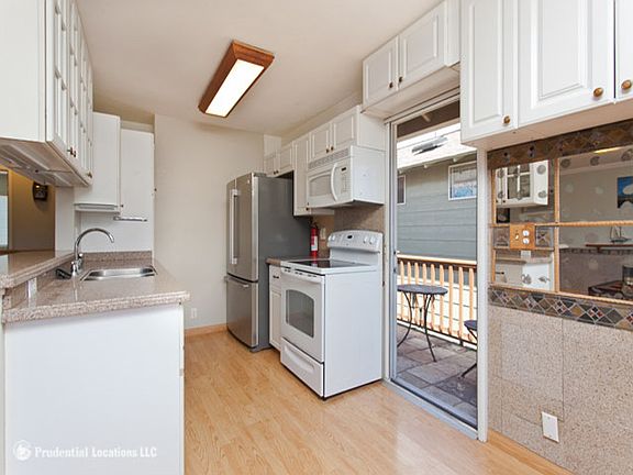 Must see! Tastefully upgraded in 2007. This 3-bed 2-bth single home features the master bedroom and full bath downstairs. Laminate wood floor throughout, guest parking, close to shopping and dining. Upstairs has a deck.