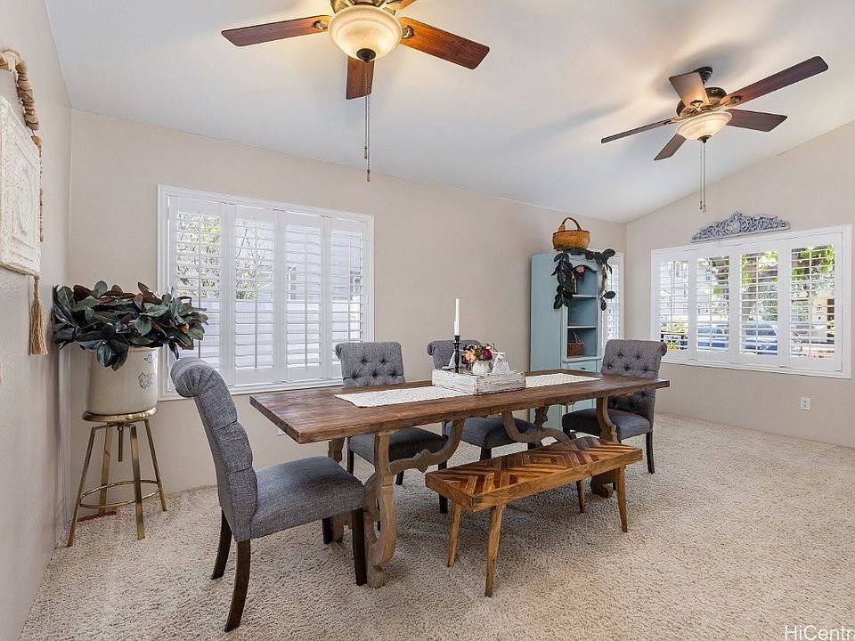 Upgraded single-level home is one of the most sought-after models in the Ewa Beach neighborhood of Ocean Pointe. This beautiful home has high vaulted ceilings, three bedrooms, two baths, and plenty of upgrades like central air conditioning, new kitchen appliances, granite counter tops, plantation shutters throughout, and 28 owned photovoltaic panels. This move-in ready and has been meticulously cared for inside and out. From the mature palms in the front yard to the lush greenery in the back yard, you’ll feel right at home in your island sanctuary. The patio provides a little oasis for outside dining. Your are surrounded on several sides by tropical plants and a large fan palm that is so soothing to listen to when the wind blows. Convenient location just blocks away from beaches, golf course, schools, shopping, dining, and the newly opened Wai Kai waterfront recreation area! The detached garage provides room for two cars and there is also street parking for guests. This is the home you’ve been looking for!