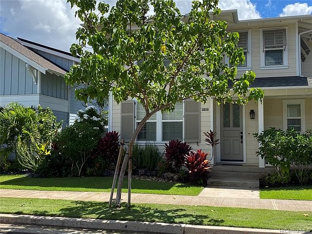 4 bedrooms + bonus room upstairs, 3 Baths, Full bedroom and Bath Downstairs, 2 story home with 2 car garage entrance from the back lane, Quest parking located in the back in Hoakalei-Kuapapa 7 years young. Detached enclosed 2 car garage. Central A/C. Plantation Shutters. Former model home. Large open kitchen. Nice back yard for relaxing. The Association and MF fee includes private access to the Wai Kai Lagoon, internet/ cable and phone package, common area maintenance, community Pool and center. All for $260/mo.Close to schools ,shopping, golf, and beaches.