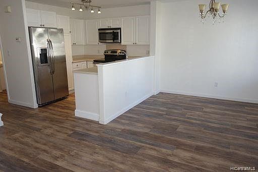 2-story townhouse located in the desirable complex of Mariners Place Townhomes in Ewa Beach. Central A/C + ceiling fans. New flooring and fresh new paint. Private front courtyard w/white picket fence & welcoming arch, sprinkler system on timer. Bright, cheerful kitchen boasts white cabinetry, stainless steel appliances, side by side refrigerator w/ice & water dispenser, built-in microwave, dishwasher, electric glass cook top stove/oven, double stainless steel sink w/garbage disposal. Chandelier designates dining area adjacent to kitchen. All bedrooms are upstairs. Master suite has a dual sink vanity, walk-in closet, ceiling fan. Water, sewer, trash, parking, Association Fees & Sales Tax are all included in the rent.
