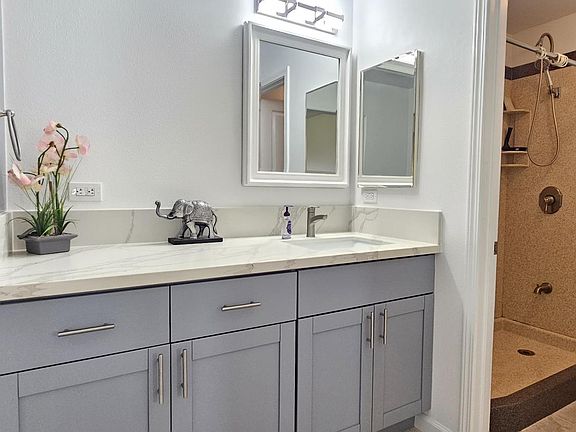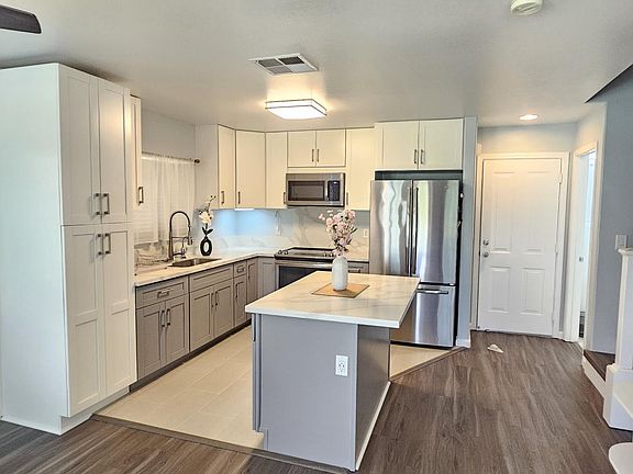 This beautifully renovated Spinnaker home was updated in 2024 and offers modern, high-quality finishes throughout. The kitchen features custom shaker cabinets, quartz countertops, stainless steel appliances, and new vinyl/tile flooring. The home remains comfortably cool year-round with central air conditioning, powered by PV solar, resulting in electricity bills as low as $30 per month, PLUS, water is included. The main bedroom includes a spacious walk-in closet, a mounted TV, and a generously sized en-suite bathroom with a walk-in shower designed for ease and comfort. The second bedroom is equipped with custom shelving and a built-in desk, ideal for an office or gaming room. The third bedroom is furnished with a built-in Murphy bed, maximizing space and functionality. Half bathroom downstairs comes with a toilet and a urinal. The home also includes a FOB key granting access to the resort-style pool and community area. End unit with lots of nearby guest parking. This beautifully renovated Spinnaker home was updated in 2024 and offers modern, high-quality finishes throughout. The kitchen features custom shaker cabinets, quartz countertops, stainless steel appliances, and new vinyl/tile flooring. The home remains comfortably cool year-round with central air conditioning, powered by PV solar, resulting in electricity bills as low as $30 per month, PLUS, water is included. The main bedroom includes a spacious walk-in closet, a mounted TV, and a generously sized en-suite bathroom with a walk-in shower designed for ease and comfort. The second bedroom is equipped with custom shelving and a built-in desk, ideal for an office or gaming room. The third bedroom is furnished with a built-in Murphy bed, maximizing space and functionality. Half bathroom downstairs comes with a toilet and a urinal. The home also includes a FOB key granting access to the resort-style pool and community area. End unit with lots of nearby guest parking.