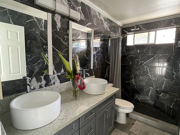 A gorgeous newly renovated 2-story house is available! This 4-bedroom, 3-bathroom home is located in Ewa Beach. It features central AC, well kept modern style interior and appliances, two-car garage, private yard, laundry room, spacious living room, dining room, 65" tv on the master bedroom wall, 65" tv on lanai exterior wall, Lanai outdoor seating & fire pit, great for entertaining! Located close to golf clubs, Costco, military base, KaMakana Alii, shopping, restaurants, and more! The home will be rented unfurnished. Pets are negotiable.