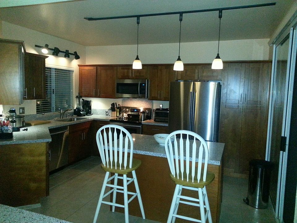 BRAND NEW KITCHEN! ARBORS AT EWA 3/3 CONDO with OVERSIZED TWO CAR GARAGE. Storage galore! GATED COMMUNITY with renovated private pool and bbq area just 40 yards away! Double master bedrooms with their own full bathrooms upstairs, and large third bedroom downstairs. Separate laundry room with super capacity front load washer and drier. Newly tiled bathrooms. Deep tub in main master upstairs. Double walk-in closets in main master. Quiet, peaceful, green space beyond the tiled and covered lanai. New paint in some rooms. Includes water and sewer. Pets negotiable. Contact Kirk on his cel. for showings. Very rarely available. Water and Sewer included.