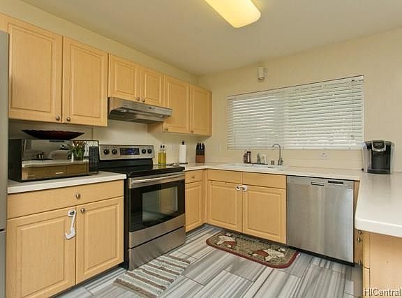 STOP your search and START packing your things for this BEAUTIFUL move in ready 3 bed, 2.5 bath single family home! There are NO MAINTAINCE FEES, and OWNED 28 PV panels with this property. The home features a nice open floor plan, central AC, laminate flooring throughout, newer upgraded stainless steel appliances, marble title in the kitchen/laundry area, fully fenced back yard, and a 2 car garage with space for 4 cars in the driveway. Conveniently located near Kamakana Alii and Laulani Shopping center, parks, gold courses, beaches, and schools. Come and see it today!