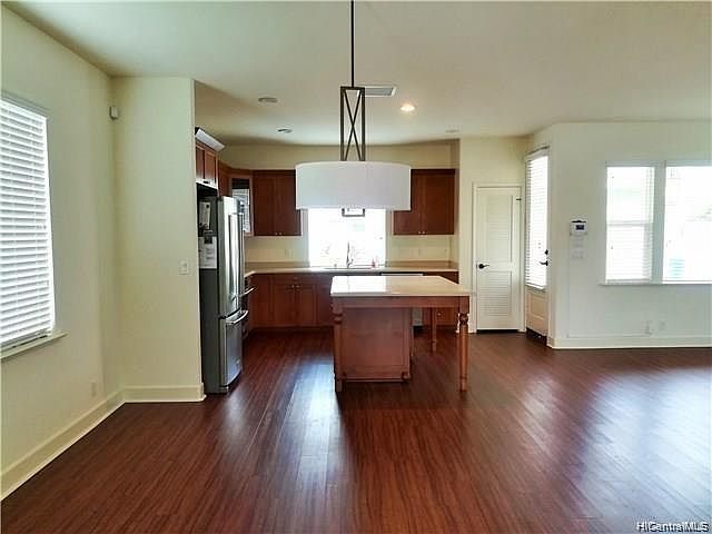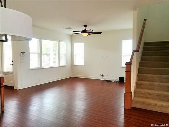 91-1043 KAIAPELE ST, EWA BEACH HI 96706 PETS WELCOME !! 13 PHOTOVOLTAIC PANEL. LOW Electric Bill with AC on 24/7. INTERNET & CABLE TV INCLUDED IN THE RENT. Tenants will have use of the KUAPAPA POOL, SPA, BBQ AREA. Centrally AC- 2295 sf 2 story home. 4 bedroom, 3 bath, 1 bedroom & bath on the 1st floor located in the desirable community of Kuapapa at Hoakalei. Spacious open plan Living / dining room. Additional Formal Living room downstairs can be used as 5th bedroom. Extra Family room upstairs. Kitchen with center island. Laminate flooring throughout, a detached 2 car garage, fully fenced yard, central A/C, stainless steel appliances, solar hot water heater. Stainless steel appliances in Kitchen. Fans in every room. Enclosed backyard. 2 car garage playgrounds & more! Rent includes internet, cable, and phone. Tenant responsible for yard maintenance and all of utilities. . Close to beaches, shopping & dining! You will have access to the private Waikai Lagoon, community pool, spa. PLEASE START WITH PROPERTY ADDRESS.