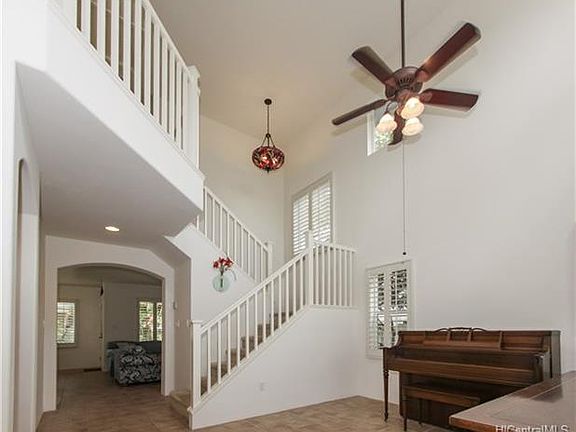 Large 4 bedroom 3 bath home in the Ocean Pointe neighborhood. This home features: Solar Water Heater, New Central AC, Ceramic Tile flooring, Corian countertops, Ceramic Range, and Plantation Shutters. Well maintained with a full bedroom and bathroom on the first floor. Enjoy the sounds of your own private waterfall in this beautifully landscaped backyard complete with koi pond. Natural lighting cascades through out the living room accented by the cathedral ceilings. Close to schools, parks, Ka Makana Ali'i Mall, golfing, and beaches. View 3D Interactive video tour in the virtual tour section.