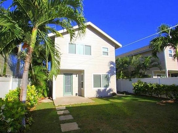 Enjoy the convenience of living in the Ocean Pointe Subdivision near lots of new shops/ services. This single family home is located just a few blocks from the ocean and beach park! The downstairs has a large living room, a dining area (or office space), and an open kitchen with an island that makes for easy entertaining and family time. The laundry area and half bath are very nicely situated. The upstairs features 3 bedrooms & 2 bathrooms, the master bedroom suite has a vaulted ceiling, walk-in closet, dual sink vanity and bath tub. Central A/C, wood, tile and carpeted floors throughout. Outside you'll find an adorable porch in the front and a fully fenced spacious yard and a detached 2 car garage in the back. A large back yard, lots of room for the littles to play or take them to the playground just steps away. There is also street parking in front of the home. Water/Sewer/Electricity/Yard Maintenance are tenants responsibility. ONE (1) Small dog ok but subject to approval and pet deposit. Security deposit equal to 1 months rent. Application fee $22 per adult. Please reach out to schedule a showing. Mahalo! Jewel Property Management LLC PO Box 29664 Honolulu. HI 96820 (RB-22270) Tenant pays electricity, water and sewer, cable/wi-fi. Tenant is responsible for yard/grass/trees up keep and adhering to community guidelines. Renters Insurance will be required.