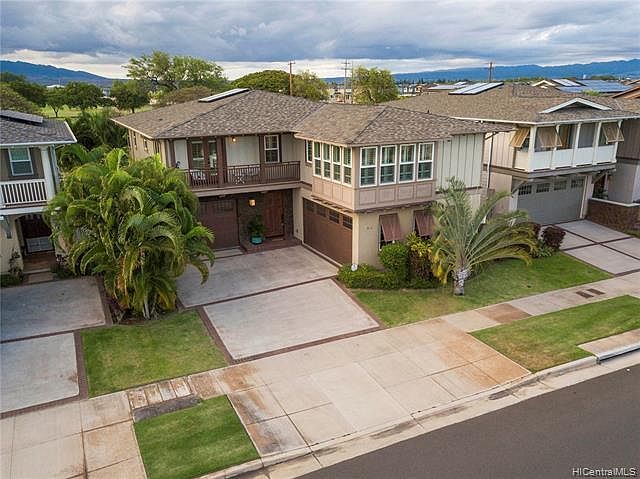 Behold - this 60.40 Koa Series Hoakalei Golf Course residence is undoubtedly the grandest of them all! Click on the virtual tour to experience luxury resort living at its finest with the spiral staircase, massive 5-bedroom, 3.5 bathroom home boasting over 3,500 sq ft of living, gourmet kitchen with Viking appliances, granite counters, & walk-in pantry. Master bedroom wing includes his/hers walk-in closets, an additional room with french doors that could be used as a home office/nursery, & a private lanai overlooking the golf course. Other highlights include a 3-car garage, full bedroom & bathroom on the ground level, a conversion of a 5th bedroom into an second living room option, central AC, beautifully landscaped & enclosed backyard.