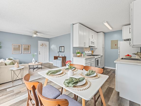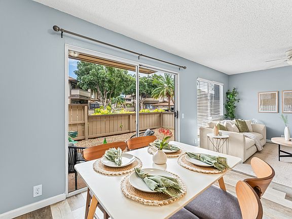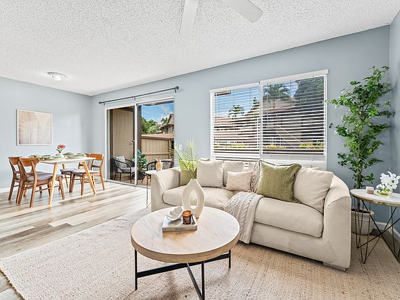 Welcome to this stylish 2-bedroom, 1.5-bath townhome offering comfort and convenience. This is a ground-floor unit with yard that features a spacious 250+ sq. ft. lanai-perfect for outdoor relaxation. Enjoy luxury vinyl plank flooring, soft closure kitchen cabinets, quartz counter tops, a kitchen sink, dishwasher, and microwave. With 716 sq. ft. of well-designed space, every room has A/C for year-round comfort, plus an in-unit washer/dryer for convenience. Two assigned parking spots (one covered) make parking easy. Enjoy community perks like a pool, and benefit from quick access to the mall, freeway and bus transportation. Welcome to this stylish 2-bedroom, 1.5-bath townhome offering comfort and convenience. This is a ground-floor unit with yard that features a spacious 250+ sq. ft. lanai-perfect for outdoor relaxation. Enjoy luxury vinyl plank flooring, soft closure kitchen cabinets, quartz counter tops, a kitchen sink, dishwasher, and microwave. With 716 sq. ft. of well-designed space, every room has A/C for year-round comfort, plus an in-unit washer/dryer for convenience. Two assigned parking spots (one covered) make parking easy. Enjoy community perks like a pool, and benefit from quick access to the mall, freeway and bus transportation.