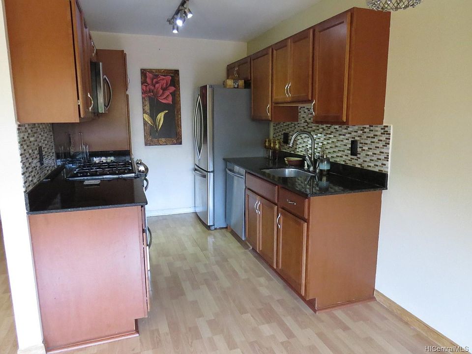 Upstairs unit, spacious and breezy with 2 bedrooms, 1 1/2 baths, 2 parking stalls, washer/dryer in the unit, laminate flooring, ceiling fans, lanai off of the dining area. gas stove, oven, dishwasher, microwave, stainless steel appliances. complex has pool, BBQ area. Water sewer, trash, parking are included in the rent. Close to shops, school, bus stops, beaches, and Ka Makana Alii Mall. Available March 1, 2019.