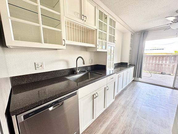 Available December 8, 2024. PET FRIENDLY! You're going to love this 2 bedroom, 1.5 bath unit! Located in Gentry's Palm Villas Apartment Complex, this desirable ground floor unit includes an enclosed lanai and a remodeled kitchen equipped with stainless steel appliances. Vinyl plank floors throughout. AC window units and ceiling fans in living room and bedrooms. Enjoy a fully fenced private lanai ideal for entertaining guests. It also has two assigned parking stalls, one covered and one uncovered, walking distance to pool, guest stalls, resident managers office, bus stop and street parking. Conveniently located near shopping centers, parks, golf courses, and beaches, including Kamakana Alii Mall, Barbers Point Beach Park, and White Plains Beach Park. Water, sewer, and trash included in the rent. Pets allowed, Water, Sewer, Trash, included in rent. No smoking. Renter's Insurance required.