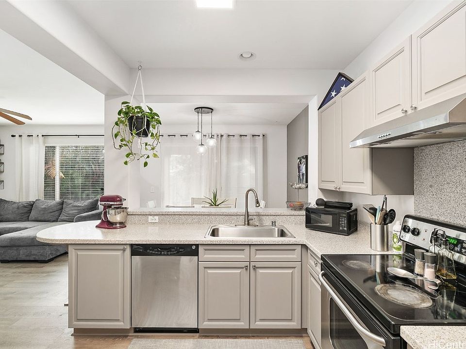 Assume owners' VA Loan@2.5% interest! (Must have full entitlement.) Desirable four bedroom w. Updated flooring, Refreshed Cabinets, & Paint. Reduce rising electric bills w/ a Solar Water Heater & 19 Solar Panels (leased) on Net Metering, PLUS Two Back-Up Batteries! Desirable open floor plan w/sliding doors leading to covered patio lanai for seamless indoor/outdoor 808 Style Living. All bedrooms are upstairs, with two bedrooms showcasing a connecting front-facing lanai terrace. At the top of the stairs, there is a landing perfect for a desk, small seating area, or a kid's & pets lounge. Located on the perimeter of the neighborhood. Assosc'n amenities include swimming pool/BBQ area/kid's play park. Dog park nearby. Great location close to the heart of Ewa Shopping, Dining, Safeway Grocery, Starbucks & more. This is 808Living! VA Loan balance $725,000 on 2/1/24. Payments are $3,105.54./month w/Carrington, not including taxes/insurance or maint fees. Carrington noted VA assumptions taking near 3 months to close. Buyers need roughly $145K cash to close assumption. Maint. fees include water/sewer/trash/community pool. Sellers plan to select offer on 2/28/24. Closing min 60 days.