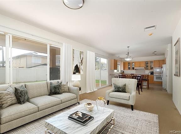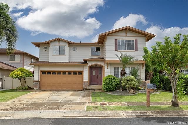 Spacious, airy & bright! Welcome to highly desired Woodbridge I Community where wide, tree-lined streets with sidewalks that span throughout the neighborhood. You'll feel at home the moment you drive down to the end of the cul-de-sac to this spacious 2,680 sq ft, 2-story Sequoia Model residence with soaring ceilings, and fully fenced wrap around yard with a large covered lanai to enjoy indoor/outdoor living. Experience privacy and comfort with the open floor plan that flows from the formal living room to the expansive kitchen and family room, indoor laundry room, and featuring an upstairs bonus flex room perfect for tv, office, or exercise area. You'll love the master bedroom with double doors and an en-suite bathroom with soaking tub and separate shower. Located in the flourishing suburbs of Ewa Beach where you can live your best life with your furry friends, too! Escape from the hectic life of the city with golf courses, dog parks, shopping, eateries, and an array of activities at the nearby Community Association Recreation Center featuring a 400 sq ft pool, holiday events, quarterly swap meets, or catch a movie in the park! Some photos have been enhanced. 2022-07-26