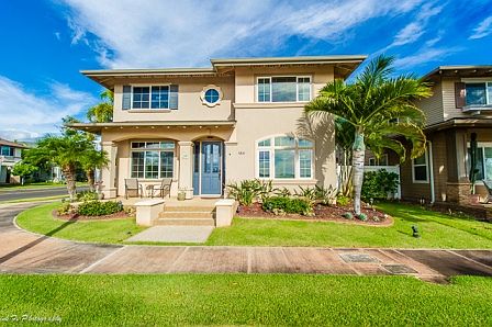 Immaculate, well maintained Corner Lot 4BR/3BA Executive Home with Home Office and peekaboo view of Hoakalei Golf Course. This beautiful home resides in the lovely community of Ocean Pointe near resort, shopping and restaurants. The property host 36 OWNED & UPGRADED PV, solar water, garage/attic fans, ceramic window tint, plantation shutters, ceiling fans, wine chiller, water softener system, full bath on first floor, surround sound wiring throughout house, Caribbean Rosewood Hardwood Floors, and Futura Stone Lanai's.