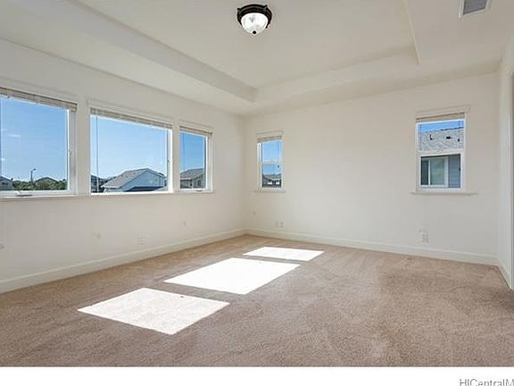 Newly built 5 bdr/ 3 bth home. Shows like a model. Spacious split level home, 4 bdr/ 2bth upstairs and 1 bdr/1 bth and separate office/den downstairs. Open kitchen leading out to a spacious living room and dining area. Grand master bedroom and master bathroom. Highlights include central AC, solar water heater, stainless steel appliances, 2 car garage, and huge backyard. Prime location close to shopping centers, schools, golf courses, and Kapolei. Pets considered.