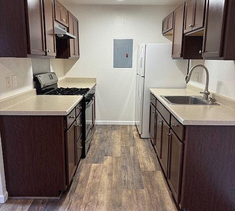 Ground floor end unit with enclosed courtyard new flooring and very well kept. Clean and ready for immediate occupancy. NO PETS. Unit comes with all major appliances and 2 covered parking stalls. Community pool on property for your enjoyment.