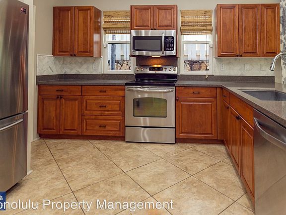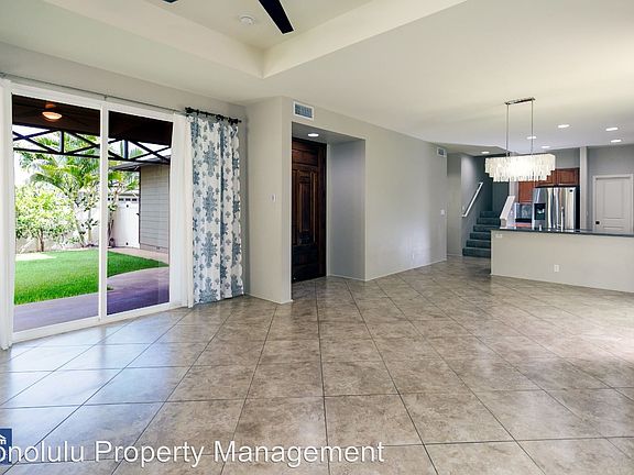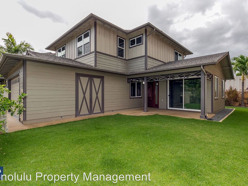 Ewa Beach/Gentry Sandalwood 4 Bedroom, 3 bath, with 2 car garage available for rent $3,800.00 - This is a large beautiful modern 2 story, 4 bed room, 3 bathroom, with 2 car garage in the Sandalwood Community in Beautiful Ewa Beach. This home is on a 4003 square foot lot, and has 1,947 square feet of interior living space. This home features all the updated bells & whistles such as 22 panel solar system, and solar water heater, which saves a bundle on your electric bill each month. The bill is a minimal $35 to $44 dollars each month. There is an installed security system, which the tenant is responsible to activate, and pay for each month. The home has a central A/C system for those hot summer days. On the first floor there is 18 large beautiful tiles that runs throughout the home. The home also includes a custom beautiful shell chandelier in the dining room, custom drapes and bamboo window blinds, with 3M window tint to keep the UV rays out. There is decorator paint colors on the walls. The kitchen features a large island with beautiful dark modern wood cabinets, and solid surface counter tops, with new SamSung stainless steel refrigerator, stove and dish washer. The kitchen also has a large walk-in pantry. The living room has tray ceilings with recessed LED lights. There is one bedroom, and a full bathroom with a laundry room located on the 1st floor for your convenience. The second level has carpet throughout, with a large loft landing for family to gather for movie nights. There is a pre-wired T.V. mount for your entertainment area with a desk station for the kids homework zone. There is 3 bedrooms located on the second level, all equip with ceiling fans with remotes. The master bedroom has an on-suite bath with a custom shell chandelier and walk in closet. In the master bedroom security alarm display monitor is connected to the 1st floor, which you are able to activate or de-activate the alarm pad with the alarm key fob. There is a nice size yard with lime fruit trees, and hibiscus and tiare flowers, with a sprinkler system. Yard service is included 2 times per month. You are able to access the home through the garage for convenience. There is also access through large double doors, which opens up to the yard, which is perfect for entertaining. Terminix Pest Control is included in the rent. The home is equip with smoke and carbon monoxide detectors for your safety. Electric, water, sewer, internet, cable, telephone and alarm activation is the tenants responsibility. Application fee is $35.00 per adult (None-refundable) Online application. 1 year lease required. Ewa Beach, Hawaii. 96706. HONOLULU PROPERTY MANAGEMENT, LLC. No Pets Allowed (RLNE4940847)