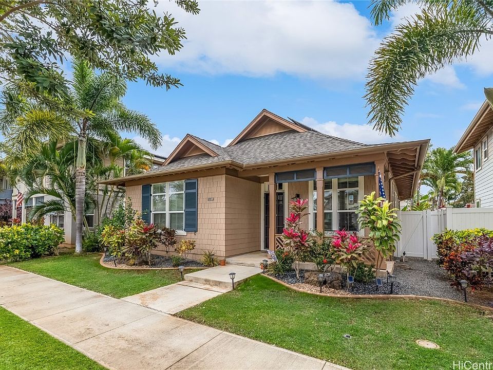 Welcome to resort living at Ka'Makana at Hoakalei! Highly desirable single story model, boosting 3 bedrooms, 2 full baths (one with step in jacuzzi tub), attached 2 car garage, security screen doors, and open floor plan with extra high 10 foot ceilings. The large open kitchen provides ample counter space and cabinets for storage, along with a breakfast bar. The enclosed den is ideal for your home office lifestyle, or can be converted into a 4th bedroom. With 20 owned solar PV panels, and solar water heater to keep utility cost down. The community has a pool, weight room, tennis court, dog park and children's parks. Low monthly association fee includes high speed internet, phone and cable TV. Hoakalei has a private golf country club and the newly opened Wai Kai wave pool and lagoon, for true resort enjoyment. Close proximity to shopping, restaurants and Ka Makana Ali'i shopping mall. Come make this your home in paradise.