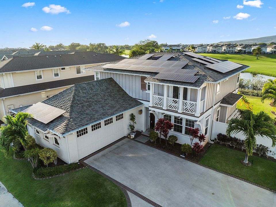 This beautiful Kuapapa @ Hoakalei home boasts captivating views of the 14th hole @ Hoakalei Country Club! You'll love the entertainment possibilities this 4 bed/3 bath, executive home provides you! The magnificent golf course/pond views provide a calming/relaxing ambiance from the convenience of your huge backyard & balcony! Kitchen was renovated w/quartz counters & luxury vinyl planks were installed downstairs in Dec 2023. Other features include Smart appliances, central AC, lights, & sprinkler system; upstairs office nook & family room that opens to the balcony; roomy master suite w/walk-in closets, dual-sink vanity, soaking tub & walk-in shower; massive Living Rm & 10 ft ceilings downstairs; laundry room w/upgraded sink/vanity; EV car charger, 40 PV panels & solar water heater to lower electricity costs; & more! Includes internet/basic cable, yard service, & community pool/spa access & exclusive Wai Kai Lagoon membership! No pets/no smoking. $20 app fee per adult, min 650 credit score & renter's insurance required per applicant...Combined gross income must be at least 3 times the rent amount. Available now! Click on the link for a 3D tour!play=no