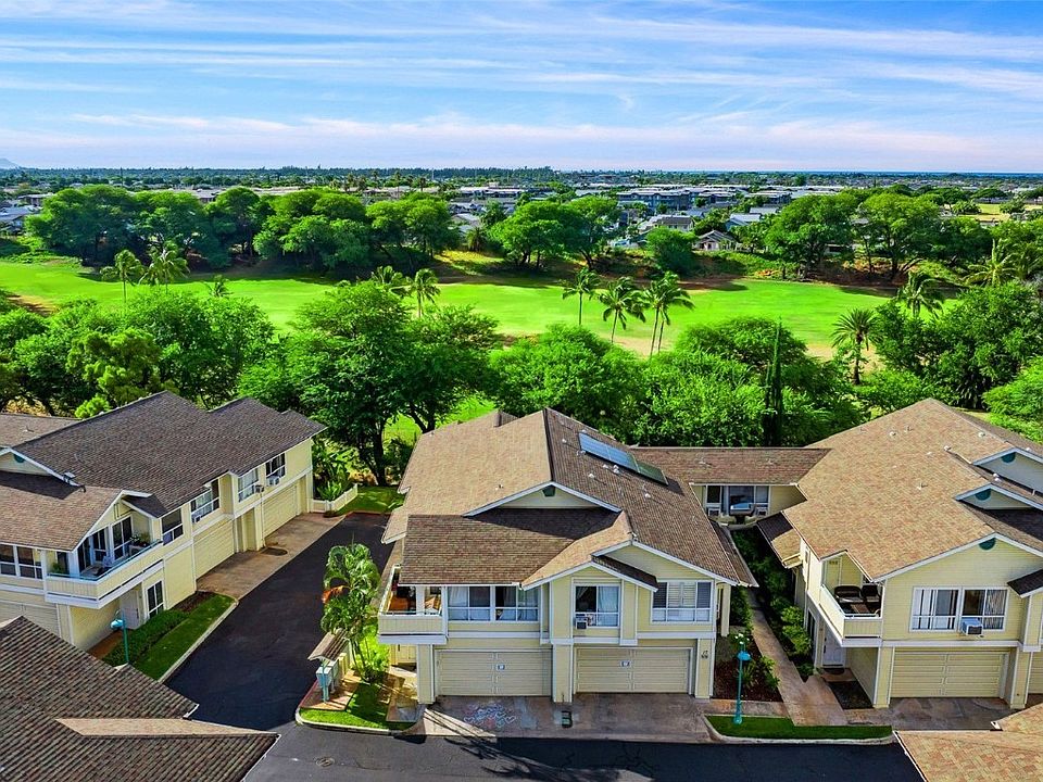 *** OWNED PV PANELS! *** Welcome to Arbors, a gated community where this beautiful three-bedroom, three-bath property awaits you. Situated on a golf course front, this townhouse boasts spaciousness that feels like a single-family home and features a full bedroom and bath on the ground floor with two ensuites upstairs. The ground-floor bedroom includes a custom built-in Murphy bed and shelving. Access this home directly from the garage, with a separate laundry room inside. On-site amenities include a swimming pool, barbecue area, and ample guest parking. Ewa Beach offers Wai Kai Lagoon surf pool, multiple golf courses, beaches, Kamakana Ali'i outdoor mall, restaurants, and parks. Home has been pre-inspected and will come with a 1-year home warranty. Pre-home inspection report will be available upon request. VA assumable loan option available at 2.25%.