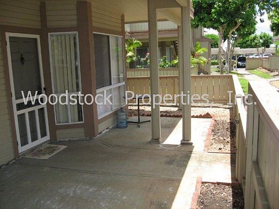 Available November 24, 2014. Gated community w/secure parking, window a/c, ceiling fan & private fenced courtyard. Complex w/pool, BBQ, Club House. This cute, cable ready corner ground floor townhouse is all on one level. Washer/gas dryer inside the unit. A large covered lanai entry. Bright cheerful kitchen w/white cabinetry, refrigerator, gas stove/oven, dishwasher, garbage disposal. Designated dining area adjacent to kitchen w/chandelier. Wall-to-wall carpeting with easy to clean vinyl flooring in kitchen & bathrooms. 2 full bathrooms, 2 car assigned parking. Water, sewer, trash, Association fees & sales tax all included in rent. 1 year lease w/'military clause', good credit & renter's insurance required, ho smoking, NO PETS, $20 application fee per adult. View video on our website. For showing appointments, please call the office - ext. 215. We will respond to your message. This property is managed by a licensed Oahu Property Management Company. View our VIDEO TOUR on our website!Available Available November 24, 2014.