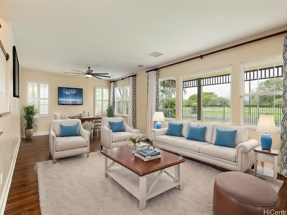 Back on the market! Embrace the legacy of luxury living in this stunning 4-bedroom, 3-bath home, proudly offered by the original owners in the highly coveted Ka Makana at Hoakalei. With meticulous care and attention to detail, this residence exudes timeless charm and sophistication. Enjoy the pride of ownership as you explore spacious interiors, a gourmet kitchen, and serene outdoor retreats. This home features thoughtful upgrades such as the Plantation Style windows, hardwood floors and a custom built-in library. Additionally, this home features 38 OWNED PV Panels, solar water heater, 3 Tesla batteries, and a Tesla EV charger. Experience the epitome of a Hawaii lifestyle with exclusive access to world-class amenities including golf courses, pristine beaches, and a variety of shopping and dining. Don't miss your chance to own a piece of paradise in Hoakalei, where cherished memories await.