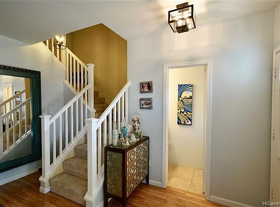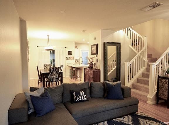 Spacious and Beautiful well-maintained 3 bedroom 2.5 bath split-level townhome in Ke Aina Kai Townhomes. Home includes an enclosed 2 car garage w/ 1 extra parking on driveway and your own private tropical oasis landscaped yard w/ sprinkler system perfect for gatherings with family and friends. Central A/C with 28 owned solar PV panels on Net Energy Metering (NEM) Agreement w/ HECO. Nest Thermostat, and electronic locks. Master bedroom with private bathroom and walk in closet. Conveniently located in Ewa Beach Ocean Pointe community close to schools, shopping, restaurants, post office, grassy park & playground and more. 1st showing Friday, 9/4 8:30am-11:30am. Pets allowed (please verify)