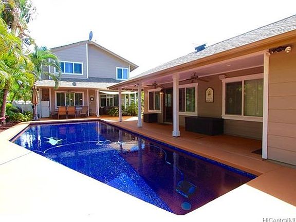 One of a kind Home located in the highly desirable Ocean Pointe. If you want the feeling of paradise, welcome home. This is a large home with an ohana suite that bigger then most one bedroom apartments.Exclusive, executive, yet family style home, on one of the neighborhood's largest corner lots-6,616 sq.ft. This professionally architecturally upgraded home includes a detached guest hide-a-way that overlooks a large swimming pool.