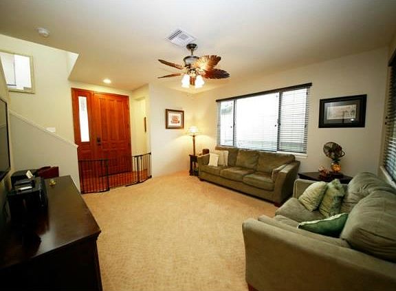 Gorgeous home in Latitudes. 3 Bedrooms 2.5 Baths. Large open kitchen with stainless steal appliances. Laminate hardwood floors, upgraded carpet and tile. Central AC and blinds throughout. Laminate hardwood staircase to 2nd floor. Fully landscape front and back yard with underground sprinklers, Tiled lanai. Close to shopping and bike paths.