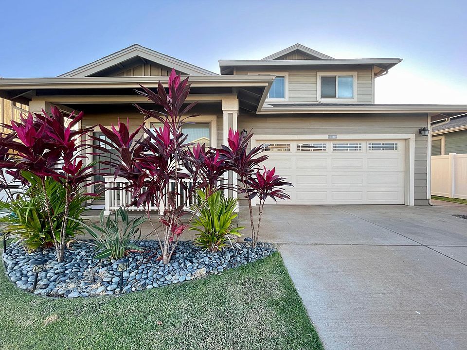 Desirable Plan 6 single family home in Hoopili available for move-in starting March 1st, 2023! Recently built in 2019, this perimeter lot home is fully fenced in and features no back neighbors. Enjoy a spacious open floor plan with high vaulted ceilings in the main living area plus a large chef's kitchen with stainless steel appliances, kitchen island, plus peninsula for additional seating and entertaining. Primary bedroom upstairs features ensuite bath with walk in shower, walk in closet with additional storage racks, an office nook, and overlooks a basil farm for a one of a kind view and additional privacy. Enjoy all of the wonderful amenities that the Hoopili community has to offer, including community pool just across the street, plus multiple parks, dog parks, and playgrounds. This home is pet friendly and waiting for you to move right in! KEY FEATURES: - 3 Bedrooms Upstairs - 2.5 Baths (2 Full Baths Upstairs, Half Bath Downstairs) - Vinyl Plank Flooring Downstairs - Carpet Upstairs - Wooden Blinds Throughout for Privacy - High Vaulted Ceilings in Main Living Areas - 2 Split A/C Units Downstairs - Stainless Steel Appliances, including High-End Samsung Refrigerator - Gas Stove, Gas Dryer, and Gas Tankless Water Heater - Full Size High End Samsung Front Loading Washer/Dryer in Garage - Spacious Chef's Kitchen, complete with island and peninsula - Primary Bedroom with Office Nook, Walk in Closet, Ensuite Bath - Two Additional Guest Bedrooms Upstairs - All Rooms feature Split A/C Units and Ceiling Fans - TV Mounts in Living/Dining Areas Plus Primary Bedrooms - Fully Fenced Backyard with Basil Farm in the Back - Blank Canvas Gardening Plot for your Green Thumb - No Back Neighbors for Increased Privacy - Two Car Garage plus Spacious Driveway - Home is equipped with EV Charge Plug - Covered Patio with Gas Stub in Back for Easy Gas Grilling NOTE: This home has an attached ADU with its own separate entrance that is currently being rented. The tenants in the ADU do not have access to your home or backyard and park on the street. Both residences are private and the only items that are shared would be the mailbox and trash receptacles. Please contact agent for showings! DISCLOSURE: Agent is homeowner and licensed real estate agent. LEASE TERMS: - Available for move in March 1, 2023 - Seeking 12 month lease term - Rent includes monthly yard service - Utilities to be split with the ADU tenant (water/sewer, electricity, gas) - Tenant to pay for their own cable/internet - Pet friendly home! Additional one time pet deposit at owner's discretion - Security deposit equal to first month's rent - Smoking is NOT allowed inside the home - Home will not include any furniture (appliances will stay) - $25 application fee to include credit & background check Please contact agent for showings! DISCLOSURE: Agent is homeowner and licensed real estate agent.