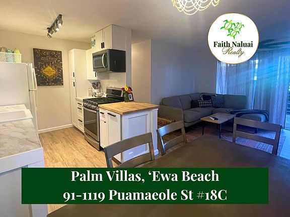 Discover this charming 2-bedroom, 1.5-bathroom townhome located at 91-1119 Puamaeole St. Apt 18C in the desirable Palm Villas neighborhood of Ewa Beach. This ground-floor unit offers a comfortable 717 sq. ft. of living space and is designed for easy, single-level living. The interior features a practical floor plan with recent updates in some units including options like fresh paint and various flooring types, and is situated on the cooler side of the building.