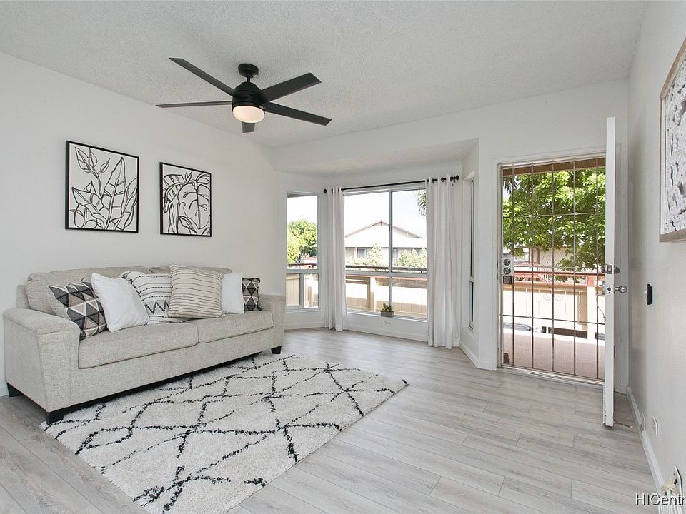 Newly updated, this 2nd floor corner unit renovated 2 bedroom 2 bath with large lanai comes with 1 covered, 1 open parking, plenty of guest parking available. Upgraded features of this unit include stainless steel appliances, gas stove, gas dryer, gas water heater, luxury vinyl plank flooring, upgraded kitchen cabinets, new vanities in both bathrooms, renovated primary shower, and W/D in unit. This gated pet friendly (2 pets no lbs restrictions) community offers swimming pool, cabana rentals, BBQ area, car wash stations, meeting rooms. Palm Court exterior painting and asphalt parking were recently completed. Residents have access to Thomas H Gentry Community Center. Located nearby is Ka Makana Alii Shopping Center which features many retail stores and eateries, community parks, Salvation Army Croc Center, the water park, and golf courses. 1st Open House Jan. 7th and 8th starting at 1-5pm. *Tax Amount Monthly based on 2022 tax assessment.