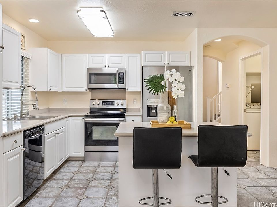 Welcome to the picturesque Ocean Pointe community in Ewa Beach, where your new home awaits. This 3-bedroom, 2.5-bathroom residence is perfect for those seeking the coveted lifestyle of Oahu’s west side. Upon entering, you're greeted by a versatile first-floor den that can easily transform into additional living space or a bedroom, offering flexibility to suit your needs. The kitchen is a chef's delight with stainless steel appliances, a large center island, and ample space for entertaining family and friends. New AC in 2019, fresh paint in 2022, and new carpet in 2023. Step outside to your fully fenced backyard oasis, covered Lanai, and a 2-car garage. Whether relaxing or hosting gatherings, this outdoor space is ideal for enjoying the island's perfect weather. Conveniently located Wai Kai and Kama'kana Ali'i Mall, you'll have easy access to shopping, dining, and entertainment options. For beach enthusiasts, Ewa Beach provides quick access to some of the most beautiful west side beaches including Hau Bush Beach Park, Barber's Point Beach Park, and the renowned Ko’Olina lagoons—all just minutes away. Don’t miss out on this opportunity to call Ocean Pointe home.