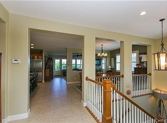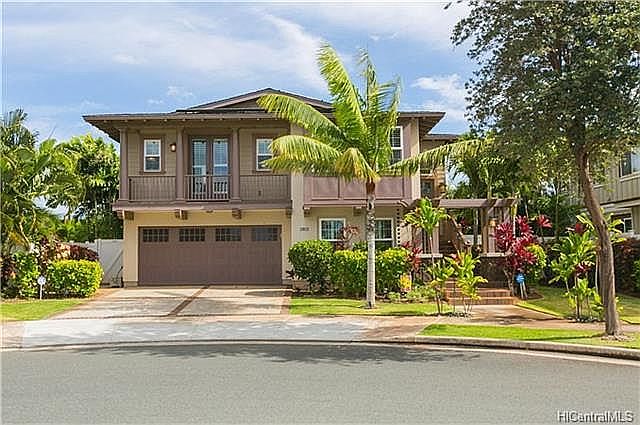 Rarely available executive home. Spacious floor plan with 2 lanais, 2 master suites, 3.5 bathrooms, 3 car garage with 2 car driveway. This beautifully maintained KOA model 60.20 is perfect for entertaining large groups boasting an upgraded gourmet kitchen and a huge custom tiled lanai with built in BBQ area. This well maintained home is located on the perimeter, on a quiet cul de sac in desired Ka Makana Hoakalei. This family friendly upscale community w/ pool, gym, bbq area, and jaccuzzi. Many upgrades included throughout, tiled floors, granite counters, stainless steel Viking and Sub Zero appliances, plantation blinds, PV system is fully prepaid lease, professionally landscaped, home security alarm, and soft water system. Close to beaches, schools, shopping, & golf course. Sold AS IS.