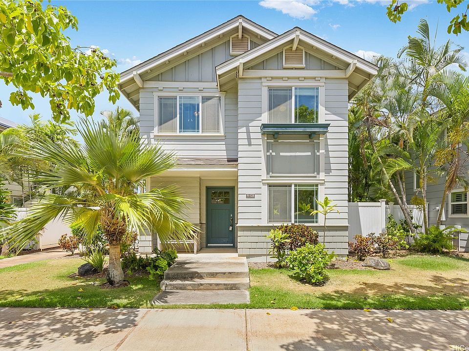 Super cute 4 bedroom 3 bath single family home located in Ocean Pointe. Owner is offering a $20,000 credit with full price offer to be used towards buyer's closing costs or to help buy down their interest rate! This home has a desirable downstairs bedroom and full bathroom which is great for entertaining out of town guests or extended family without having to climb stairs. Large Primary bedroom with high ceilings, walk in closet and a large en suite bathroom with double sinks. Two additional bedrooms are located upstairs with a work station in the hallway to help keep office clutter out of the main living area. Seller installed new carpeting upstairs in the office area and in bedrooms, a new dishwasher and new paint throughout. Home has central air and solar water heater. Home is part of the Ke Alohi Kai Sub Association and Ocean Pointe Community Associataion. The association fee break down is Ocean Pointe $62 and Ke Alohi Kai $86 per month. Conveniently located near a community park, walking and jogging paths, shopping complex, restaurants and more! Easy to see, ask your agent to call for a private appointment!
