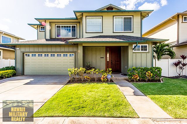 Highly desirable neighborhood of Latitudes by Gentry. This move-in ready 2-story home features 3 bedrooms, 2.5 bathrooms, central AC, fenced yard, landscaped with a sprinkler system,2-car garage, a driveway with 2 additional parking spaces, and a large private backyard. Conveniently located near the new Laulani shopping center, golf courses, and restaurants. Open House on 19 OCT 14 from 2-4PM.