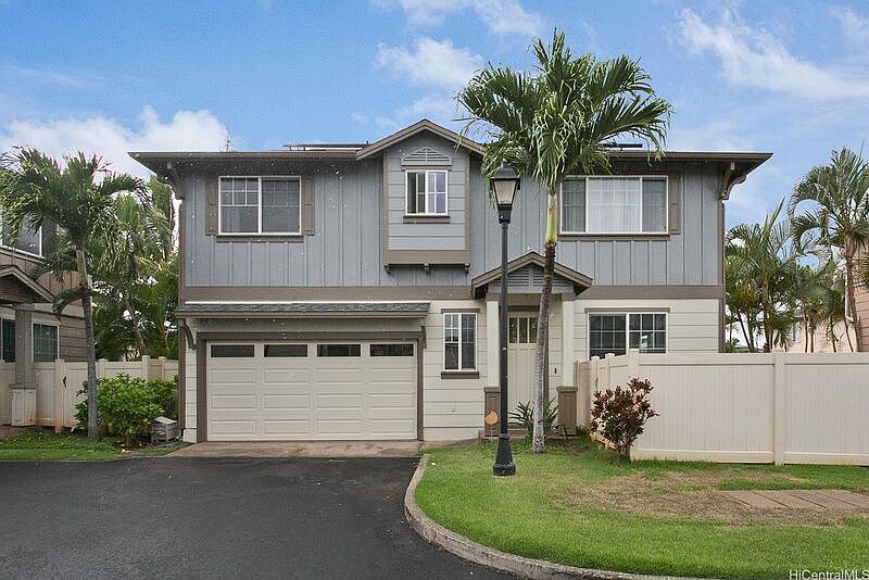 Introducing 91-1141 Kanela St #M8, Ewa Beach, HI 96706, a charming 3-bedroom, 2.5-bathroom house located in the desirable Ewa Gentry Montecito Tuscany. This lovely home features a two car garage that can also be used for storage or a home gym. A private yard perfect for outdoor entertaining, BBQ's and relaxation. Also includes PV solar panels for electric savings, central AC for all year round cooling, and a water softener for silky smooth showers. Residents can enjoy access to a refreshing community pool. Within miles from One'Ula Beach Park and Pu'uloa Beach Park where you can surf, swim, fish, and cruise. Surrounded by golf courses such as Ewa Beach 360 Golf Club, Hawaii Prince Golf Club, Barbers Point Golf Course, and Coral Creek Golf Course just to name a few. Also nearby grocery stores, restaurants, and schools. Don't miss the opportunity to make this house your new home sweet home in beautiful Ewa Beach. Amenities: pool, private yard, rec center