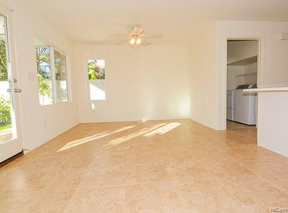 Beautiful 4 bedroom, 3 bathroom (w/1 bedroom & 1 bathroom on the first floor) single family home located in the resort community of Ka Makana at Hoakalei. This home features Photovoltiac (PV) Panels which drastically reduce your elect. bill) a updated kitchen with stainless steel appliances, travertine flooring on the 1st floor, a built in desk/office upstairs (not in a bedroom), and a landscaped fenced yard. Rent includes cable, internet, phone, and use of the community pool, fitness center, and Jacuzzi. Access (fee) to the private Wai Kai Hale Lagoon which features doggie day everyday except Saturday from 0900-1000. Contact Jeff R.