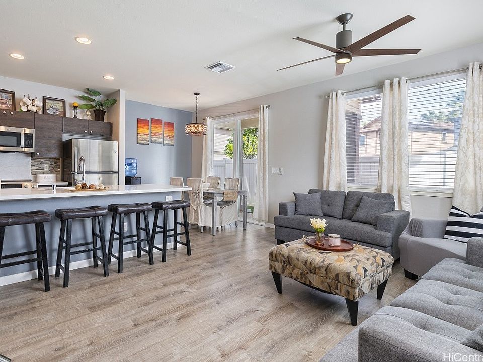 Nestled in the heart of Ewa Beach, this 3 bedroom, 2 1/2 bath single family gem has over 1,300 square feet of living space and is ready for you to move right in. Built just seven years ago, this corner home exudes contemporary charm, from the sleek finishes and stainless steel appliances, to the open-concept layout and luxury vinyl plank flooring throughout. You have a 3rd parking space and lots of parking for your guests just a stone's throw away. The low-maintenance flooring (no carpet) coupled with the no-maintenance and hassle-free outdoor turf are key benefits, plus there's nice community landscaping along the exterior of the property which adds to your curb appeal. So say goodbye to weekend lawn care and hello to extra time spent doing more Fun outings, especially since this home is situated in a prime location. You'll be minutes away from a myriad of shopping and dining options, from quaint boutiques to popular eateries, to events at the Wai Kai Lagoon...most everything you need to experience the best of island living is right at your fingertips.